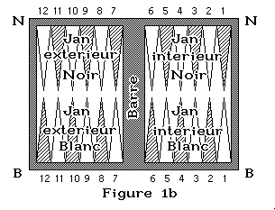 - La partie en bas de la figure 1a est le camp blanc formé du jan intérieur (B1-B6) et du jan extérieur (B7-B12).
